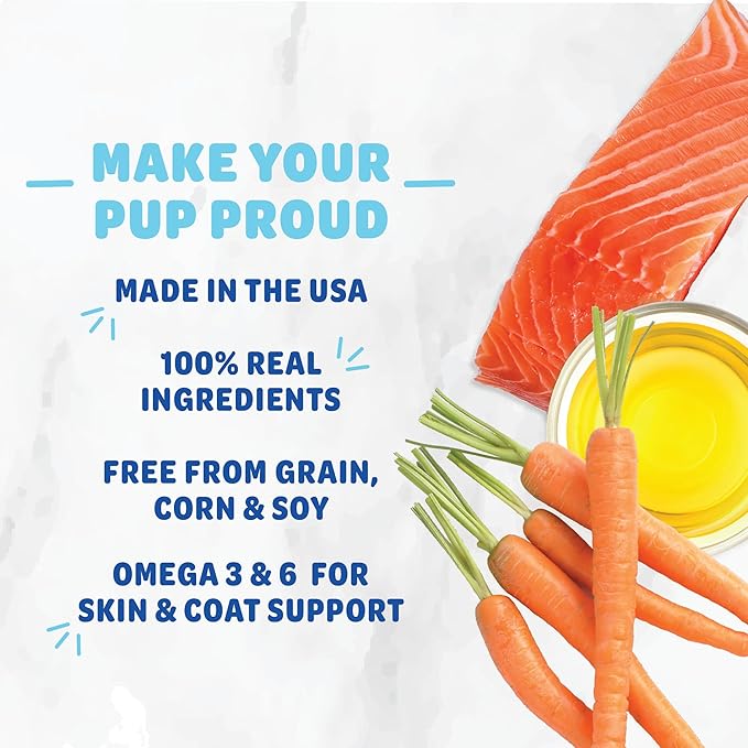 • Whole Ingredients: These yummy treats are made with real carrots and salmon oil. Free from grain, corn, and soy while still loaded with wholesome, locally-sourced ingredients. Dogs of all ages, sizes, and breeds can enjoy!
