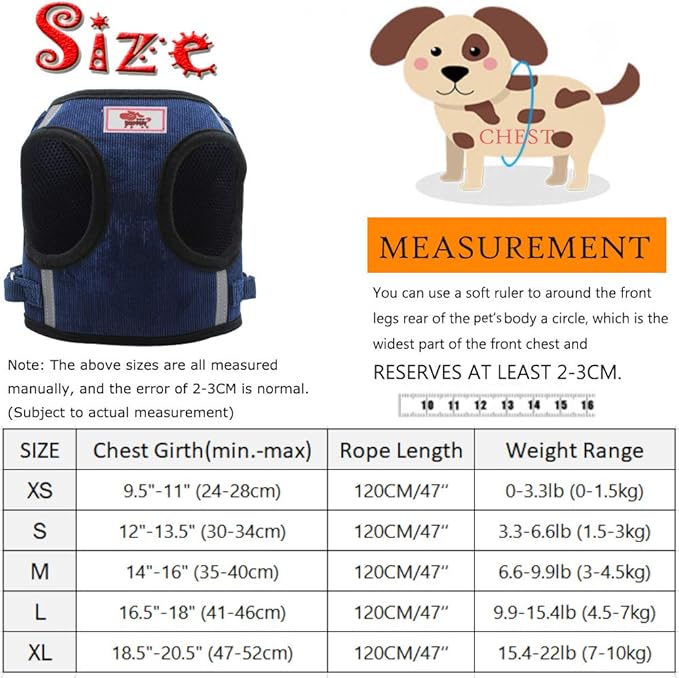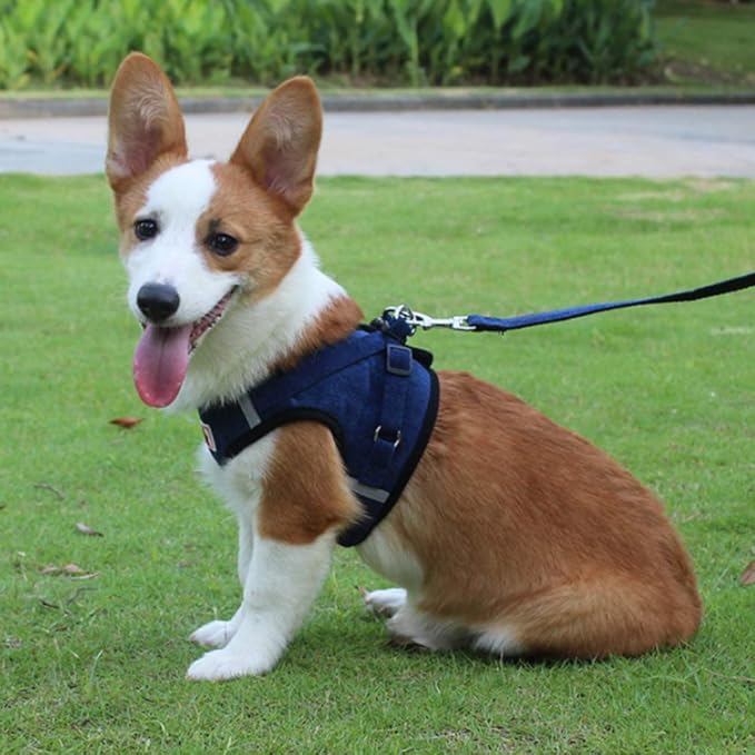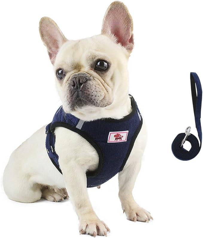 FEimaX Dog Harness and Leash Set, No Pull Reflective Adjustable Pet Harnesses for Puppy Kitten Soft Corduroy Chest Harness for Small Medium Dogs and Cats Easy Control Vest for Outdoor Walking