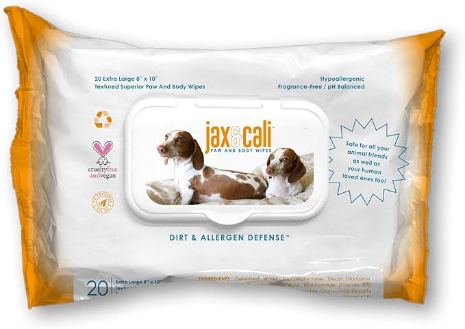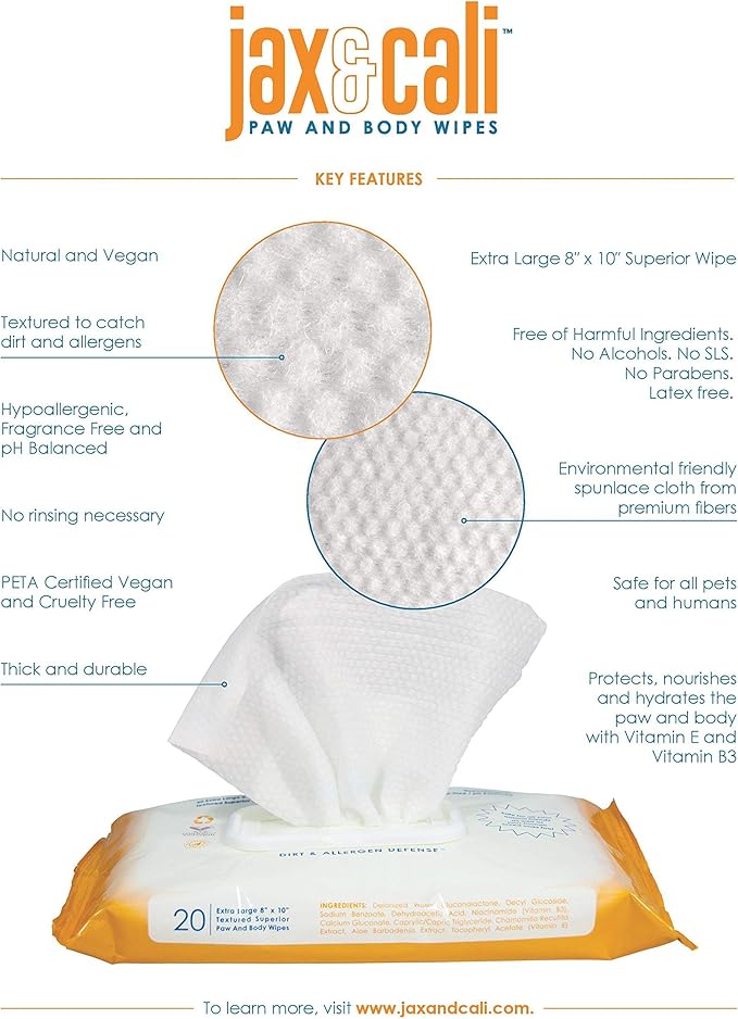 JAX & CALI All Natural Pet Toothbrush Wipes & Extra Large Paw and Body Wipes