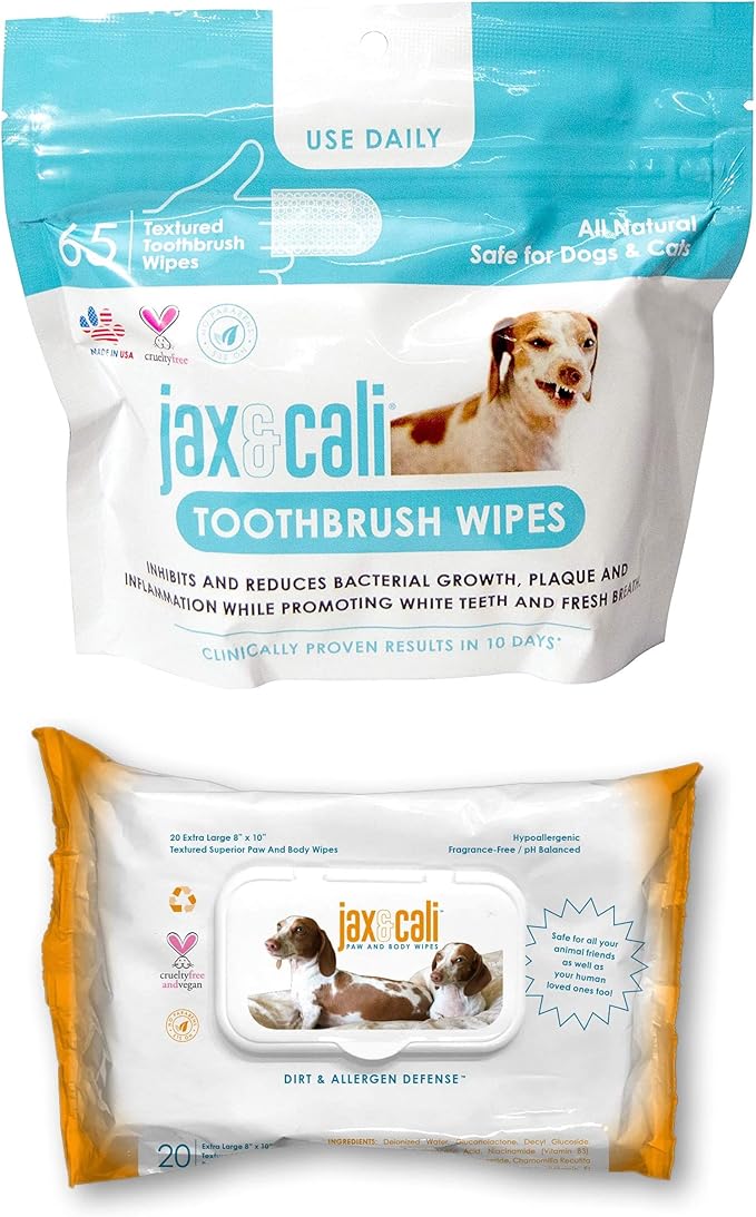 JAX & CALI All Natural Pet Toothbrush Wipes & Extra Large Paw and Body Wipes