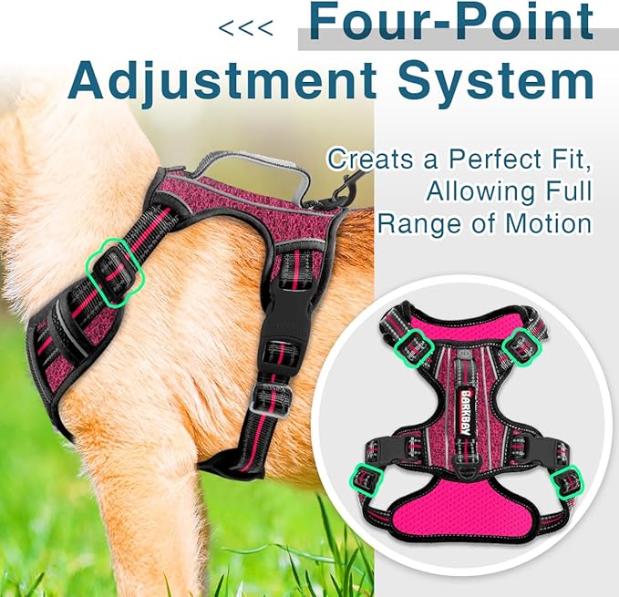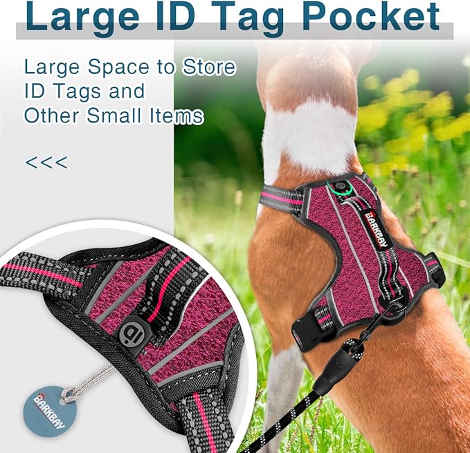 BARKBAY Dog Harness No Pull with ID Tag Pocket - Heavy Duty, Reflective, Easy Control for Large Dogs (Pink/Black,S)