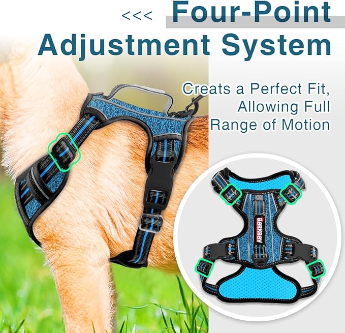 BARKBAY Dog Harness No Pull with ID Tag Pocket - Heavy Duty, Reflective, Easy Control for Large Dogs (Blue/Black,S)