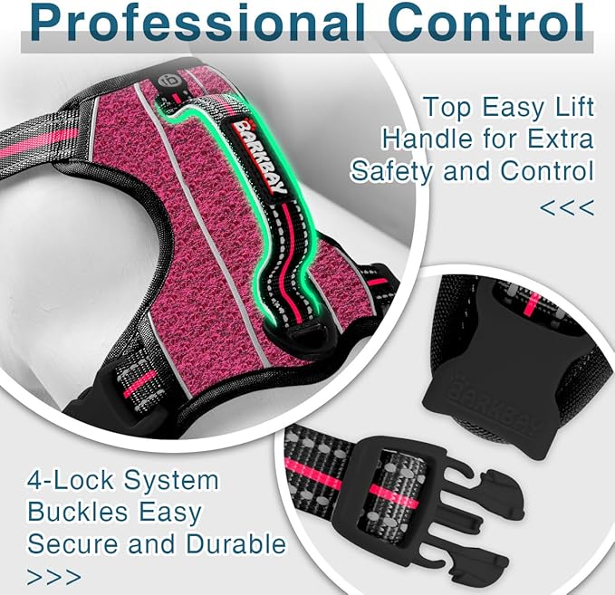 BARKBAY Dog Harness No Pull with ID Tag Pocket - Heavy Duty, Reflective, Easy Control for Large Dogs (Pink/Black,XL)