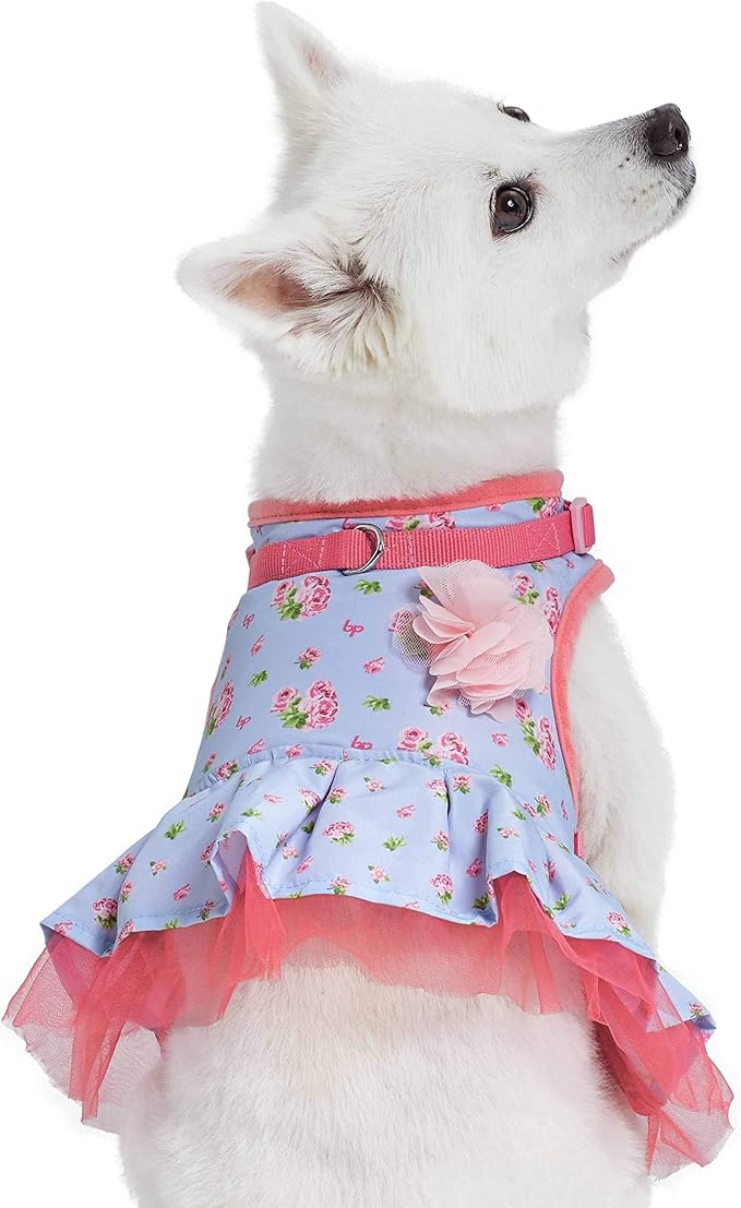 Blueberry Pet Soft & Comfy Spring Scent Inspired Floral No Pull Mesh Dog Costume Harness Dress, Pastel Blue, Chest Girth 19"-21", Small, Adjustable Harnesses for Dogs