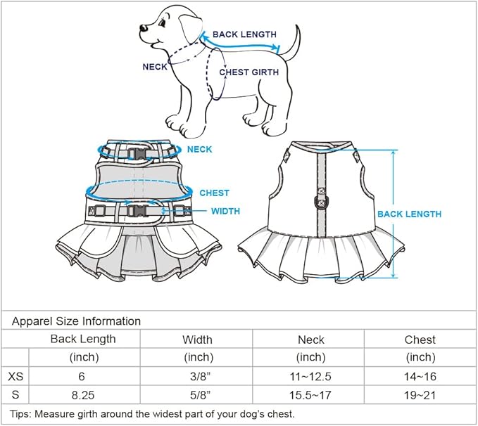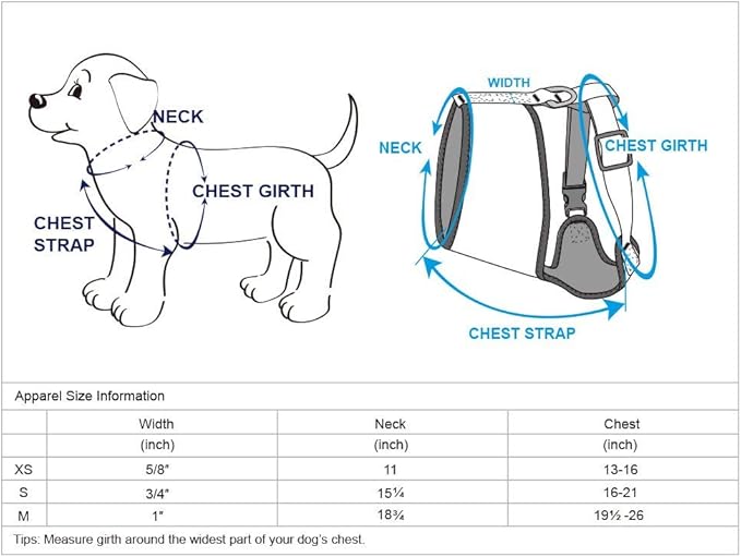 • 【 SIZE 】Chest Girth 14-16", Neck 11-12.5", Width 3/8", X-Small; Check your dog's neck and chest measurements to ensure a safe and secure fit for collars and harnesses. A well-fitting collar and harness won't leave room for chewing