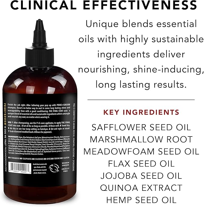 Pride and Groom The Final Coat Dog Conditioner – Formulated with All Natural Ingredients to Untangle and Nourish Any Coat for Improved Manageability and Long Lasting Shine – 16oz