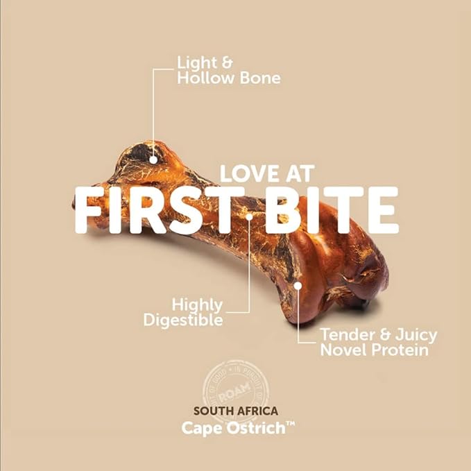 • THE BOSS-TRICH – Low fat ostrich bone that is super strong but so light it floats. Great for medium and large dogs.