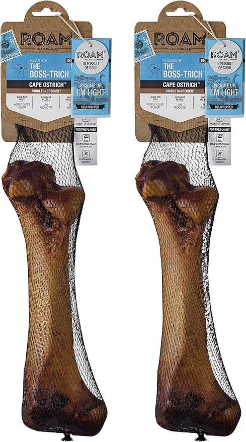 ROAM Pet Treats Boss-trich Bone Pack of 2 for Medium and Large Dogs – Long Lasting Ostrich Dog Bones