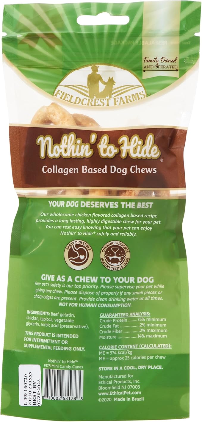 • Long-Lasting & Highly Digestible: Nothin' to Hide Mini Candy Cane chews are collagen-based and easily digestible, providing a safe and flavorful chewing experience that’s gentle on your dog’s stomach.