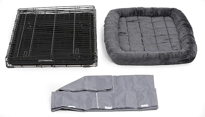 • Comfortable Dog Bed: Includes a soft gray dog bed for your pet to rest and sleep in.