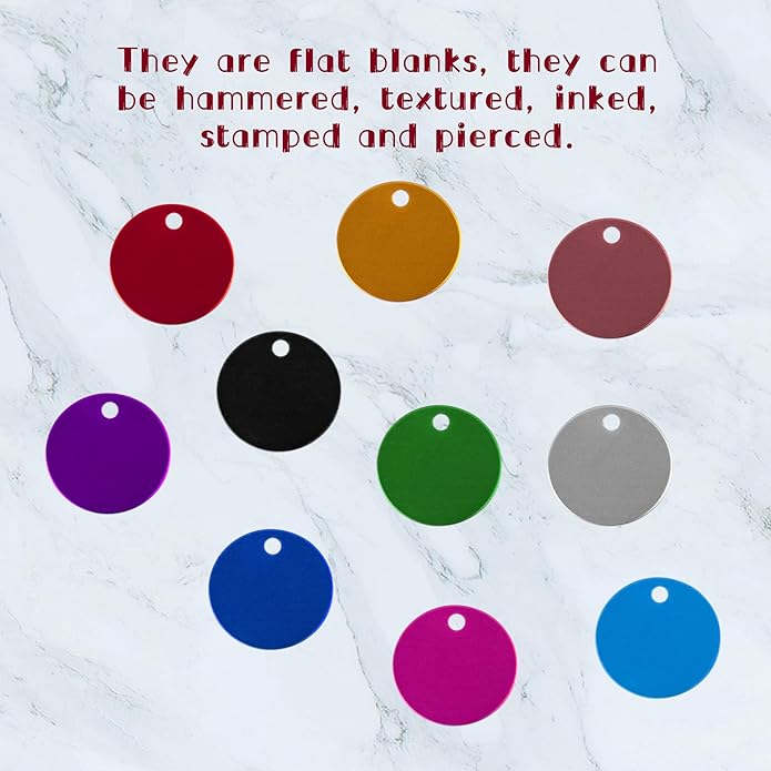 Framendino, Pet ID Tag Colorful Blank Round Double Sided Pets ID Tag Name Phone Number ID Tags Aluminum Charms