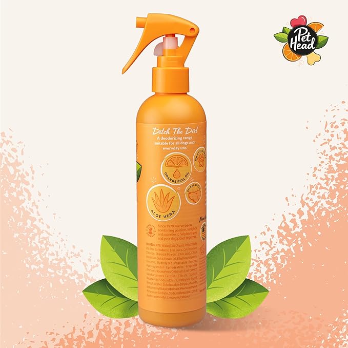 Pet Head Ditch the Dirt Dog Deodorizer Spray | Orange Scent | Waterless Pet Grooming Spray for Dogs | Odor Neutralizing for Smelly Dogs | Gentle Formula for Puppies | Made in USA | 10.1 fl. oz.
