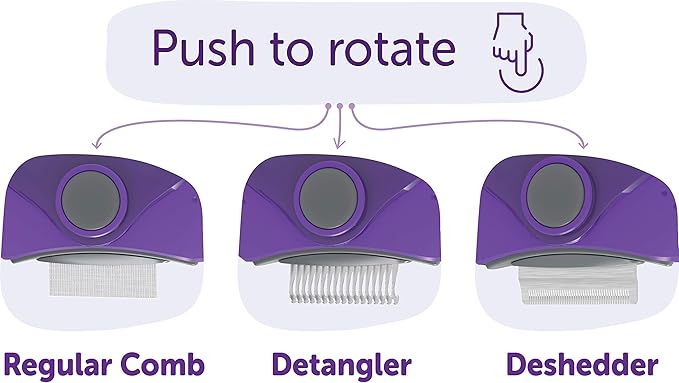 • EASY TO OPERATE - Simply push the center button of Deshedding, Dematting, and Combing Tool to rotate to whichever comb fits your needs between the mat remover, deshedder or the regular comb.