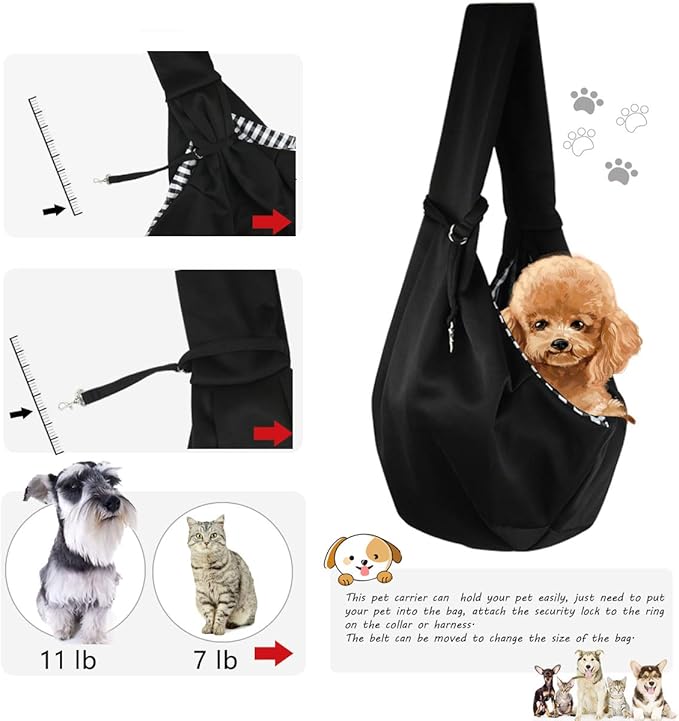 Dog and Cat Sling Carrier Little Pet Carrier Shoulder Crossbody Pet Slings for Outdoor Traveling Subway (Black)