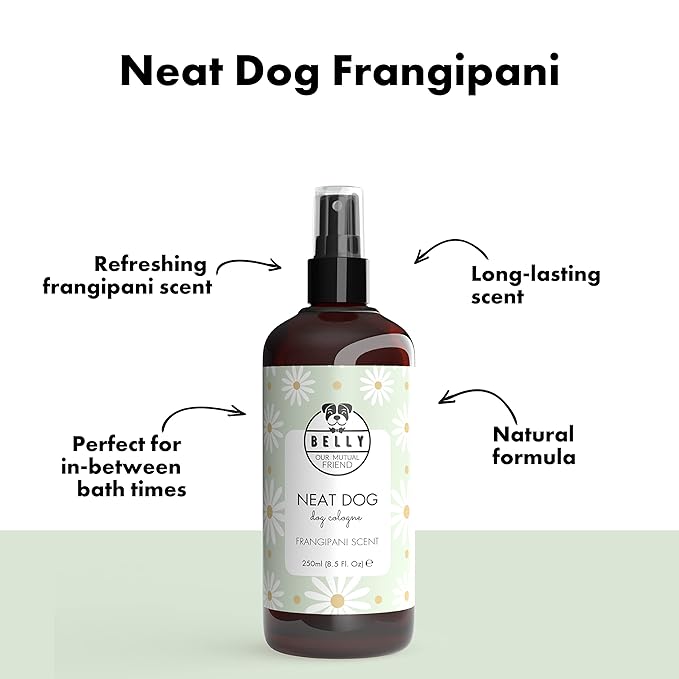 Belly Dog Cologne, 8.5 oz - Neat Dog Frangipani - Neutralize Strong Odors - Premium Scented Deodorizing Body Spray for Dogs - Made in Germany