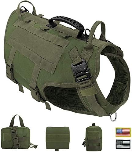 PET ARTIST Tactical Dog Harness for Hiking Training, No Pull Vest Harness for Medium Large Dogs, with Pouches and Patches Green, XL