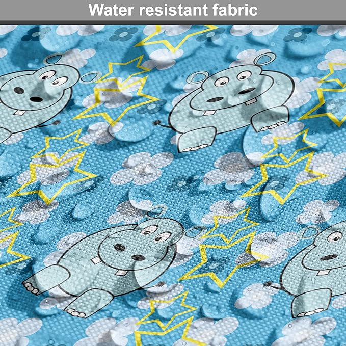 Lunarable Yellow and Blue Dog Crate Cover, Funny Cartoon Hippopotamus with Stars and Daisy Flowers, Easy to Use Pet Kennel Cover for Medium Large Dogs, 36 Inch, Pale Blue White Yellow