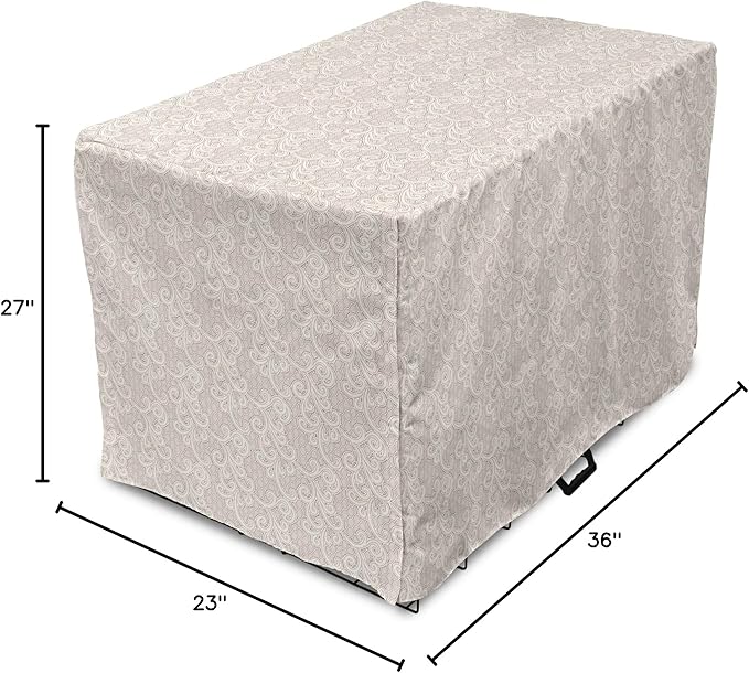Lunarable Cream Dog Crate Cover, Old Lace Design with Soothing Color Scheme Vintage Style Classical Inspired Image, Easy to Use Pet Kennel Cover for Medium Large Dogs, 36 Inch, Cream Tan