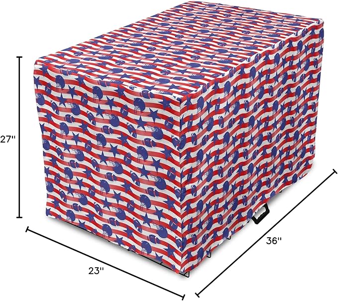 Lunarable Football Dog Crate Cover, Wavy Stripes and National Sport in American USA Inspired Colors, Easy to Use Pet Kennel Cover for Medium Large Dogs, 36 Inch, Coral Violet Blue White