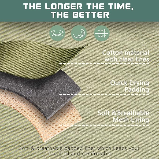 - 🐾DUARABLE & BREATHABLE MATERIAL: All Day Comfort.🐾 The heavy-duty vest made of soft cotton fabric with clear texture for the beautiful appearence. Extra durability and wear-ability, suitable for all field use. The soft padding can protect your dog's skin, while the breathable air mesh keeps your dog ventilated and comfortable. We will protect the comfort and health of the dog together with you.