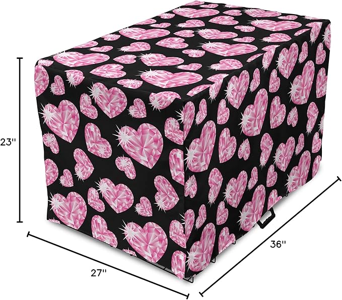 Ambesonne Diamonds Dog Crate Cover, Romantic Pink Heart Stones on Black Background Valentines Day Theme, Easy to Use Pet Kennel Cover for Medium Large Dogs, 36 Inch, Pink Black