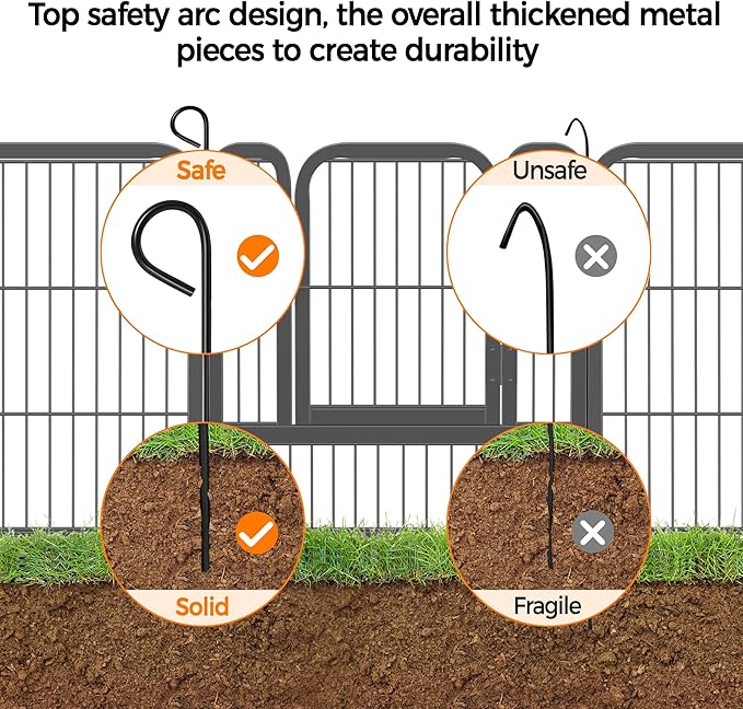 • Solid Metal Stakes Ensuring Safety: The upgraded solid metal stakes achieve a fully enclosed bend, avoiding sharp edges to protect pets. At the same time, the solid stakes are easily inserted into the ground to keep the walls more stable and rigid when the dogs exercise