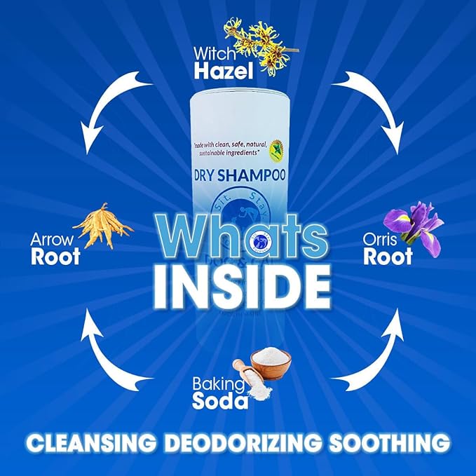 Sit. Stay. Forever. Natural, Dry Powder Shampoo for Dogs & Cats, Organic, Non-Toxic, Hypoallergenic Dog Deodorizer Powder, Anti-Itch & Odor Control, Easy No-Rinse Formula, Safe for Sensitive Skin