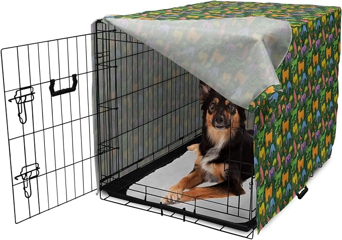 Ambesonne Dog Dog Crate Cover, Illustration of Various Colorful Animals Assorted Cartoon Style Pets, Easy to Use Pet Kennel Cover for Medium Large Dogs, 36 Inch, Hunter Green Multicolor
