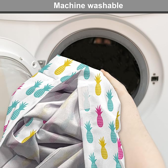 Lunarable Yellow Pineapple Dog Crate Cover, Rhythmic Ananas Fruits in Colorful Design Summer Tropical Concept, Easy to Use Pet Kennel Cover for Medium Large Dogs, 36 Inch, Turquoise Hot Pink