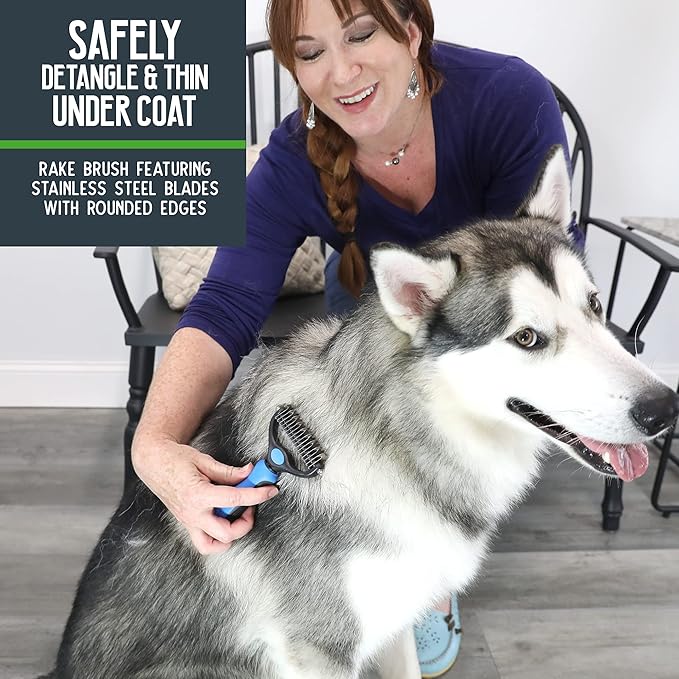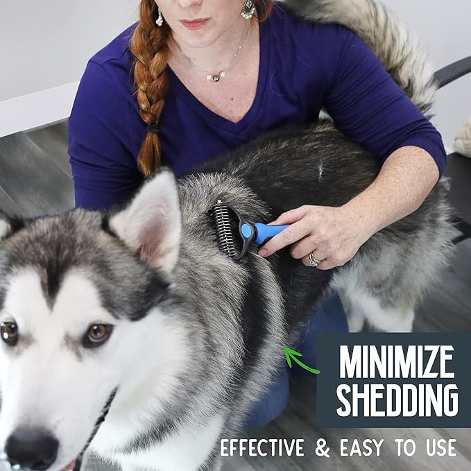 • DOUBLE SIDED UNDERCOAT BRUSH: With 2 brush heads in one, choose the larger 9-tooth comb for knots, tangles and large areas before switching to the 17-tooth comb side to thin out both the topcoat and undercoat.