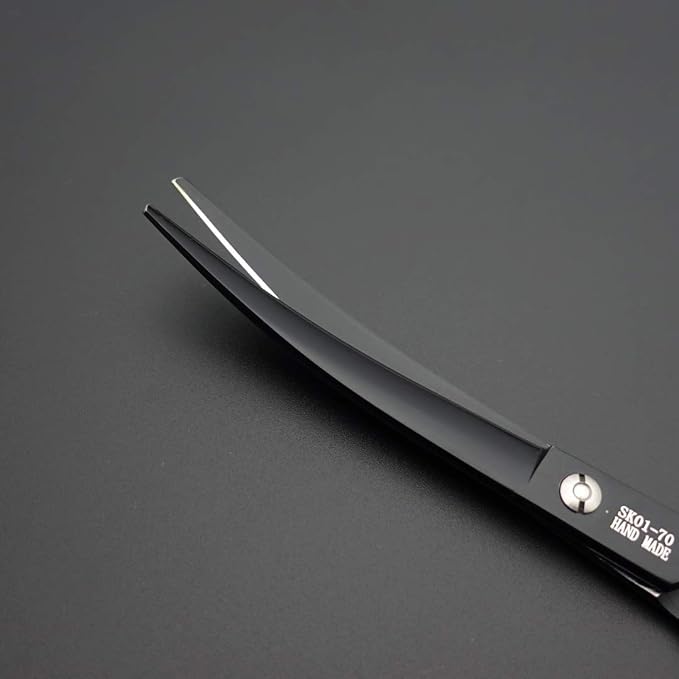 • SHARP EDGE. The edge line of the blade is evenly polished,which make the scissors durably sharp.With meticulously crafted clear tip of tooth ,the thinning scissors are sharp and do not clip the hair.The edge of the curved scissors is 25°-30°,majority standard angle to satisfy most part of groomers.