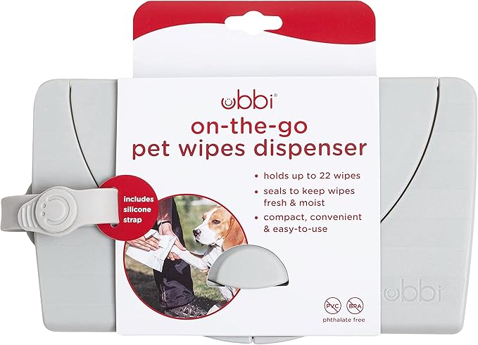 Ubbi On-The-Go Pet Wipes Dispenser, Grooming Wet Wipes Container for Dogs and Cats, Moisture Locking Wipes Dispenser for Pet Home and Travel, Gray