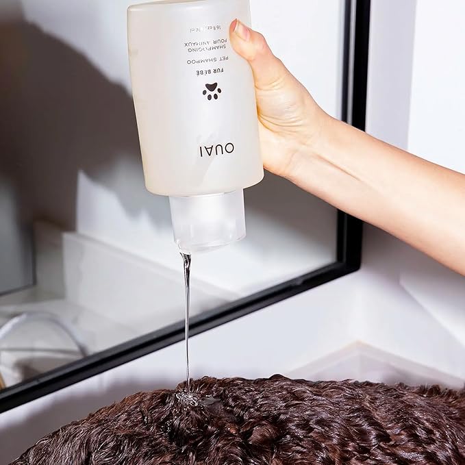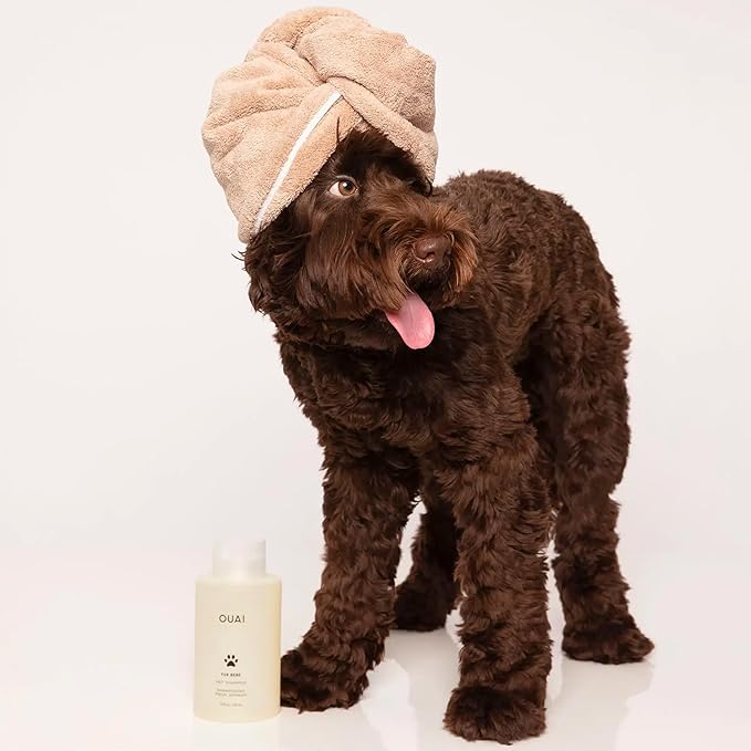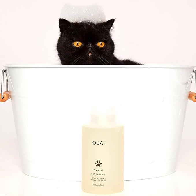 • Walk This OUAI, Wash This OUAI - Fur Bebe dog grooming shampoo contains aloe vera to condition fur, rambutan seed extract to protect fur from pollution while hydrating the skin underneath, hydrolyzed vegetable protein to improve fur strength and elasticity to fight breakage, and panthenol for a shiny finish to dog hair.