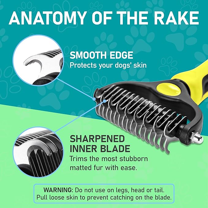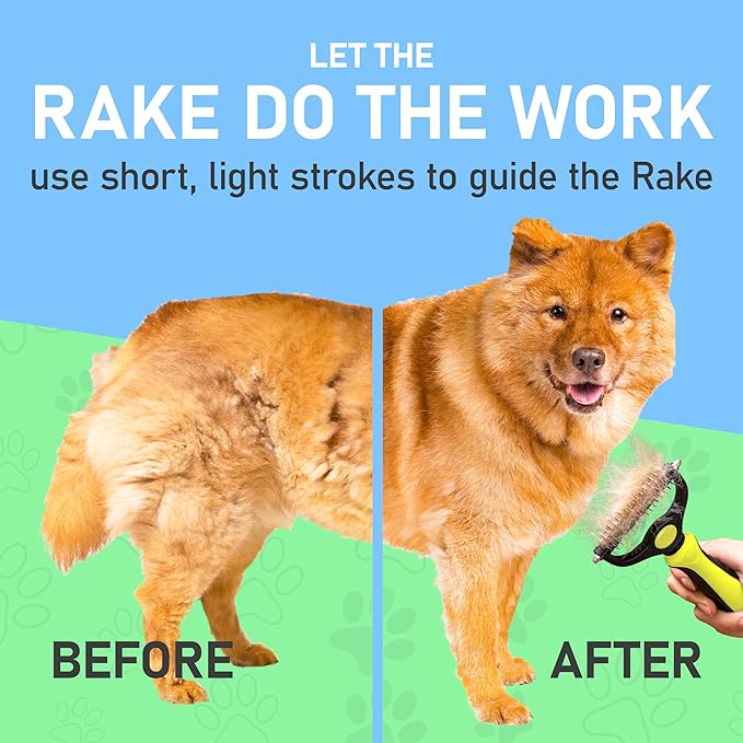• EFFECTIVE DESHEDDING TOOL & COMFORTABLE TO USE: The perfect cat brush or dog grooming brush solution for pets with thick fur or dense double coats. This grooming rake for dogs is designed with a lightweight, comfortable, non-slip rubber handle to keep the brush from moving around as you groom your pet.