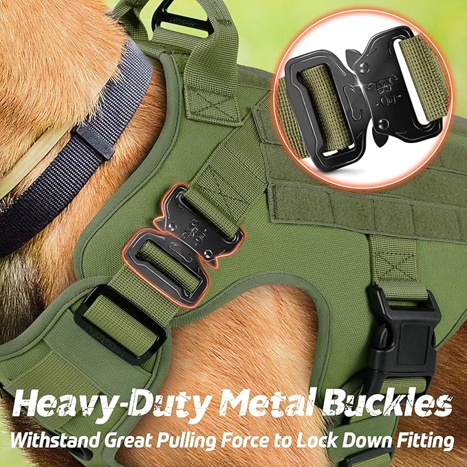 rabbitgoo Tactical Dog Harness for Large Dogs, Heavy Duty Dog Harness with Handle, No-Pull Service Dog Vest Large Breed, Adjustable Military Dog Vest Harness for Training Hunting Walking, Green, M