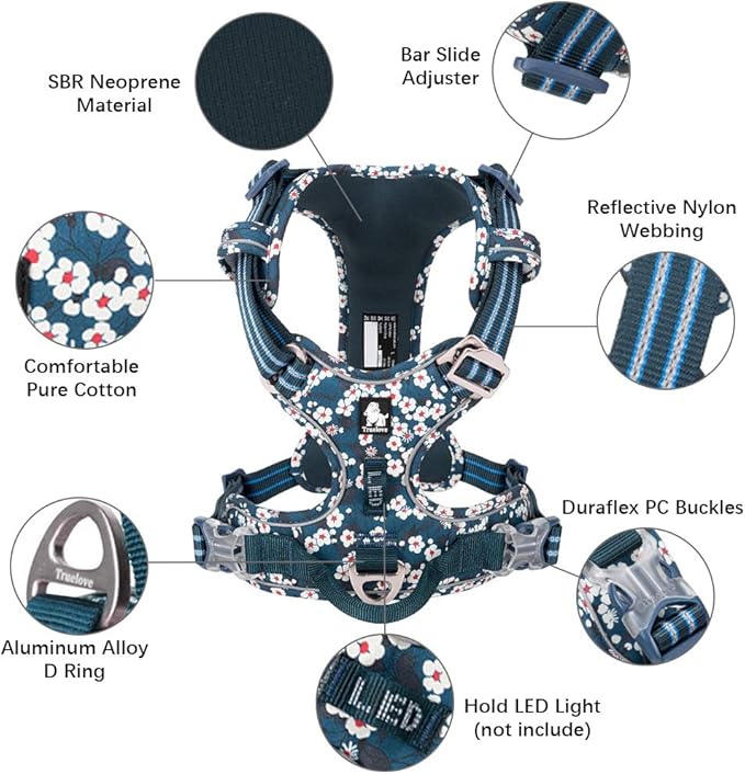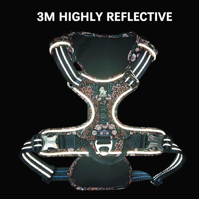 La La Pet® Floral No Pull Dog Harness Reflective Dog Vest Harness with Front & Back 2 Leash Clips and Easy Control Handle for Small Medium Large Dogs 3 Snap Buckles Easy to Put On & Take Off