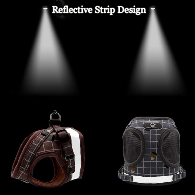 FEimaX No Pull Dog Harness and Leash Set, Soft Padded Pet Plaid Vest Harness for Small Medium Dogs and Cats, Reflective Ajudstable Puppy Harnesses for Walking Training