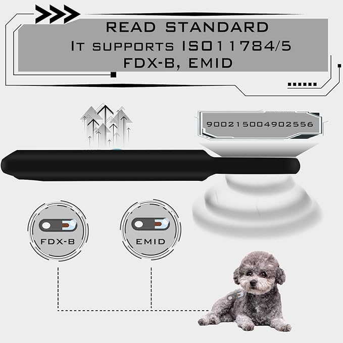 • [Important Notes Must Read] - Note that if you purchase this product without confirming the format of your pet's microchip, it may not be recognized. So please confirm whether this product is compatible with your pet's microchip. This product only supports FDX-B/EMID microchips. It cannot recognize any other format of microchips. The number of FDX-B microchips is 15 digits. The number of EMID microchips is 10 digits.