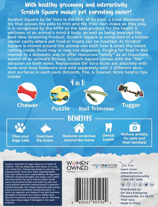 De' Vora Scratch Square - Dog Nail Scratch Board Treat Box | 5 in 1 Dog Scratch Pad for Nails | Dog Nail Scratch Board with Treat Box | Scratch Pad for Dogs Nail File | Dog Scratch Board XS/S