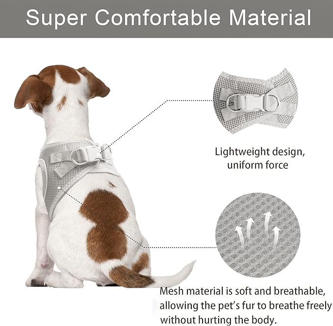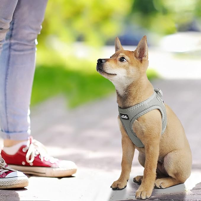 TwoEar Dog Vest Harness Reflective, No-Pull Pet Harness Easy Control with Breathable Mesh, Soft Puppy Step-in Harness No-Choke for Outdoor Walking, Training for Small Dogs(S, Grey)