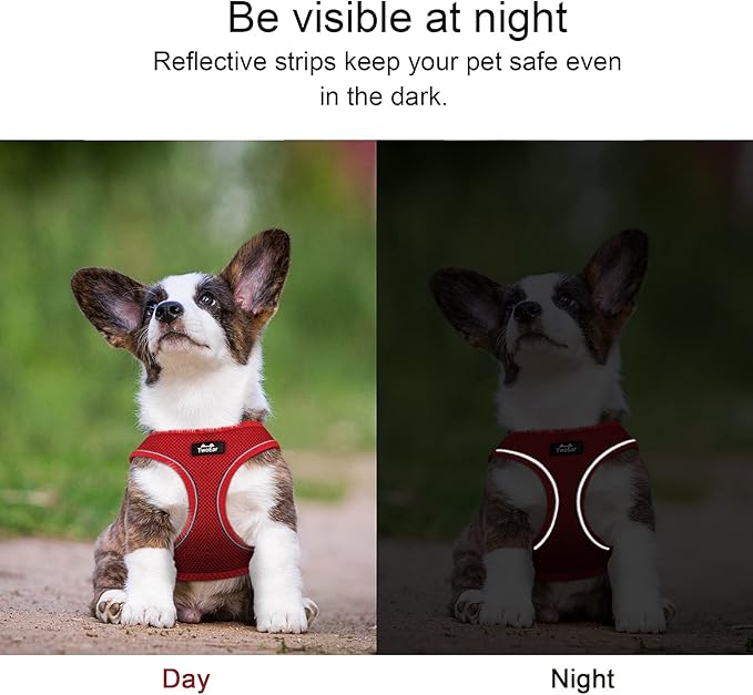 TwoEar Dog Vest Harness Reflective, No-Pull Pet Harness Easy Control with Breathable Mesh, Soft Puppy Step-in Harness No-Choke for Outdoor Walking, Training for Medium Dogs(M, Red)…