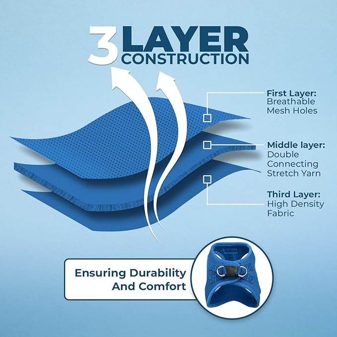• Comfort All Year: Made with a soft and breathable air mesh, this lightweight, fast drying harness ensures maximum comfort for your pet during walks, regardless of the season