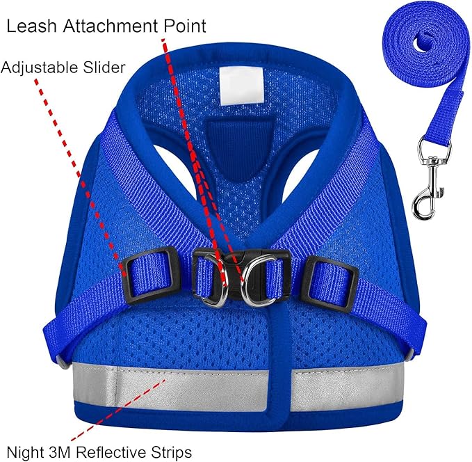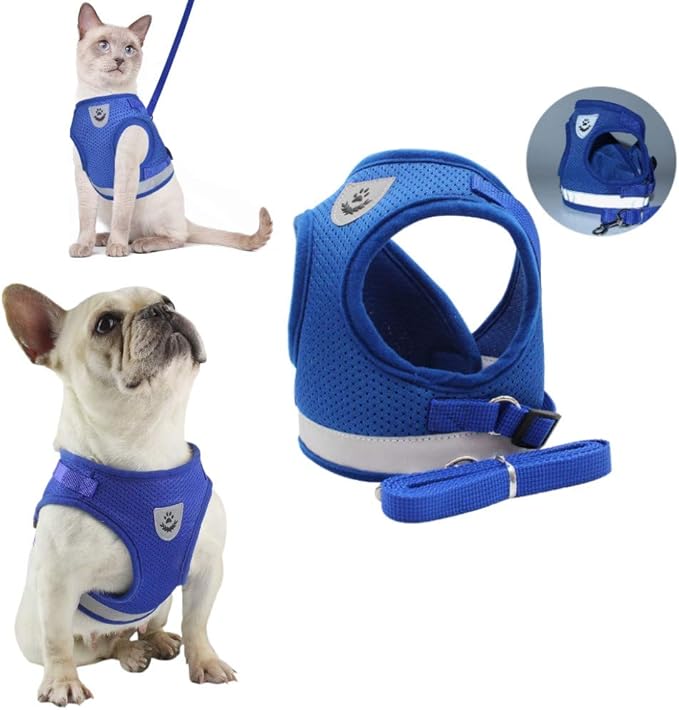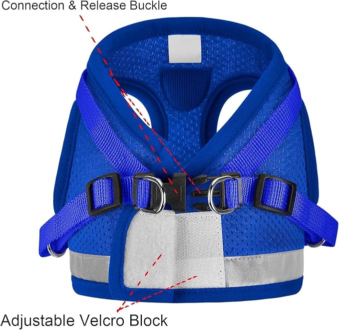 • ★All-weather mesh: This cat harness or small dog harness is made of lightweight, soft, breathable air-mesh fabric, with soft edge and resilient cushioning, which can effectively prevent injuries, giving extra comfort and protection, this all-weather pet vest won't be too bulky to restrain your pet's movement or overheat your lovely pet when hot, and reinforced stitching allows you to walk your pet with confidence.