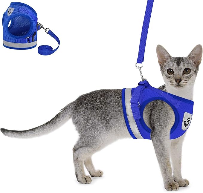 Cat Harnesses for Small Dogs - Cat Harnesses and Leashes for Walking, Adjustable Reflective Step in Dog Harness for Small Dog and Cat (Blue, XS (10.2” – 11.4”))