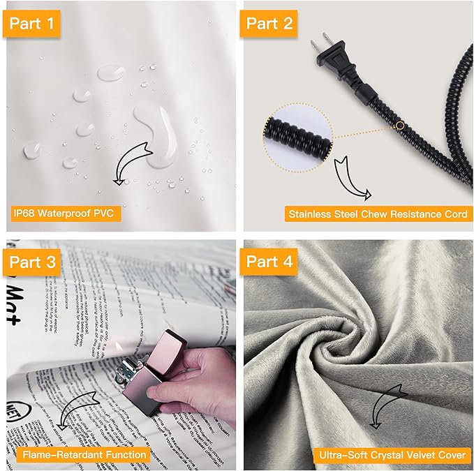 - ❤ [Attention: Prevent pets from chewing] This product uses reinforced wires to prevent pets from chewing on the wires, double anti-bite protection to ensure safety. When pets gnaw on the electric heating pad and thermostat, please stop in time to avoid damage to the electric heating pad and loss of heating effect!