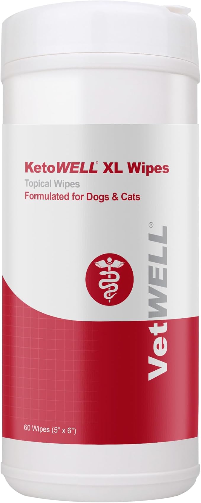 VetWELL KetoWELL XL Topical Wipes for Dogs & Cats - Extra Large Cleaning Wipes for Dogs & Cats - 60 Wipes (5" x 6" Each)