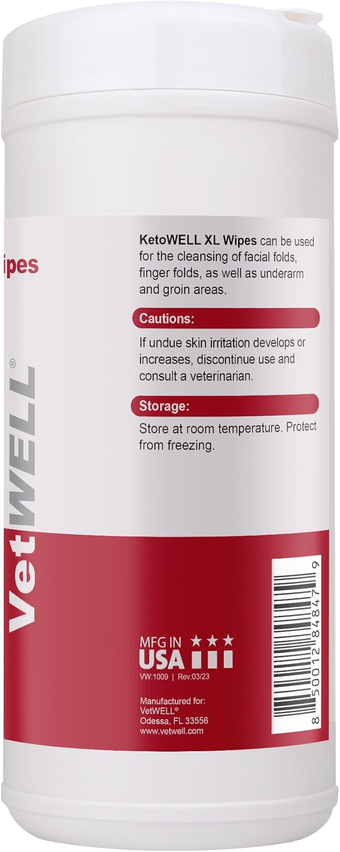 VetWELL KetoWELL XL Topical Wipes for Dogs & Cats - Extra Large Cleaning Wipes for Dogs & Cats - 60 Wipes (5" x 6" Each)