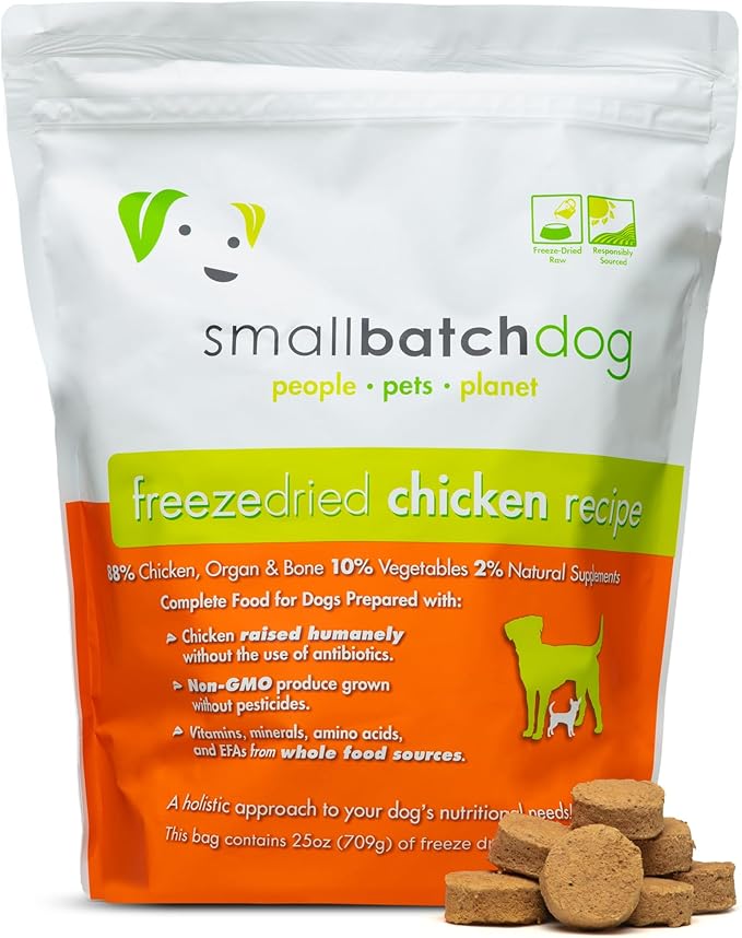 smallbatch Pets Freeze-Dried Premium Raw Food Diet for Dogs, 25oz, Chicken Recipe, Bulk Bag, Made in The USA, Organic Produce, Humanely Raised Meat, Hydrate and Serve Patties, Wholesome & Healthy