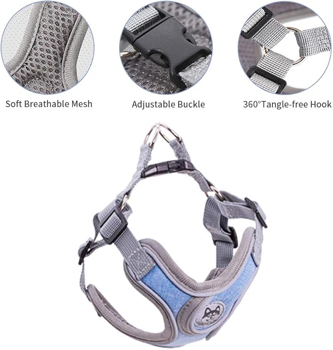 Step-in Dog Harness, Adjustable Reflective Small Dog Harness and Leash Set, Soft Air Mesh Vest Kit for Small Medium Breed Puppy and Cats (XS, Blue)