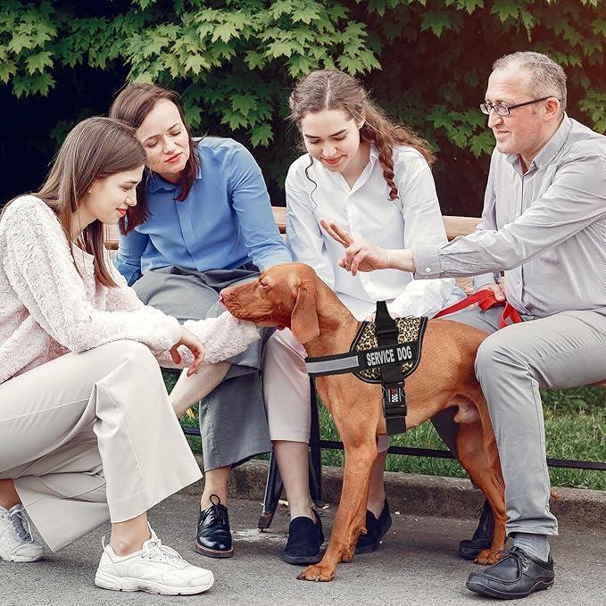 Dogline Unimax Dog Harness Vest with Service Dog Patches Reflective No-Pull, Adjustable Straps, Breathable Neoprene for Medical, Service, Identification and Training Dogs Girth 15 to 19" Leopard Brown